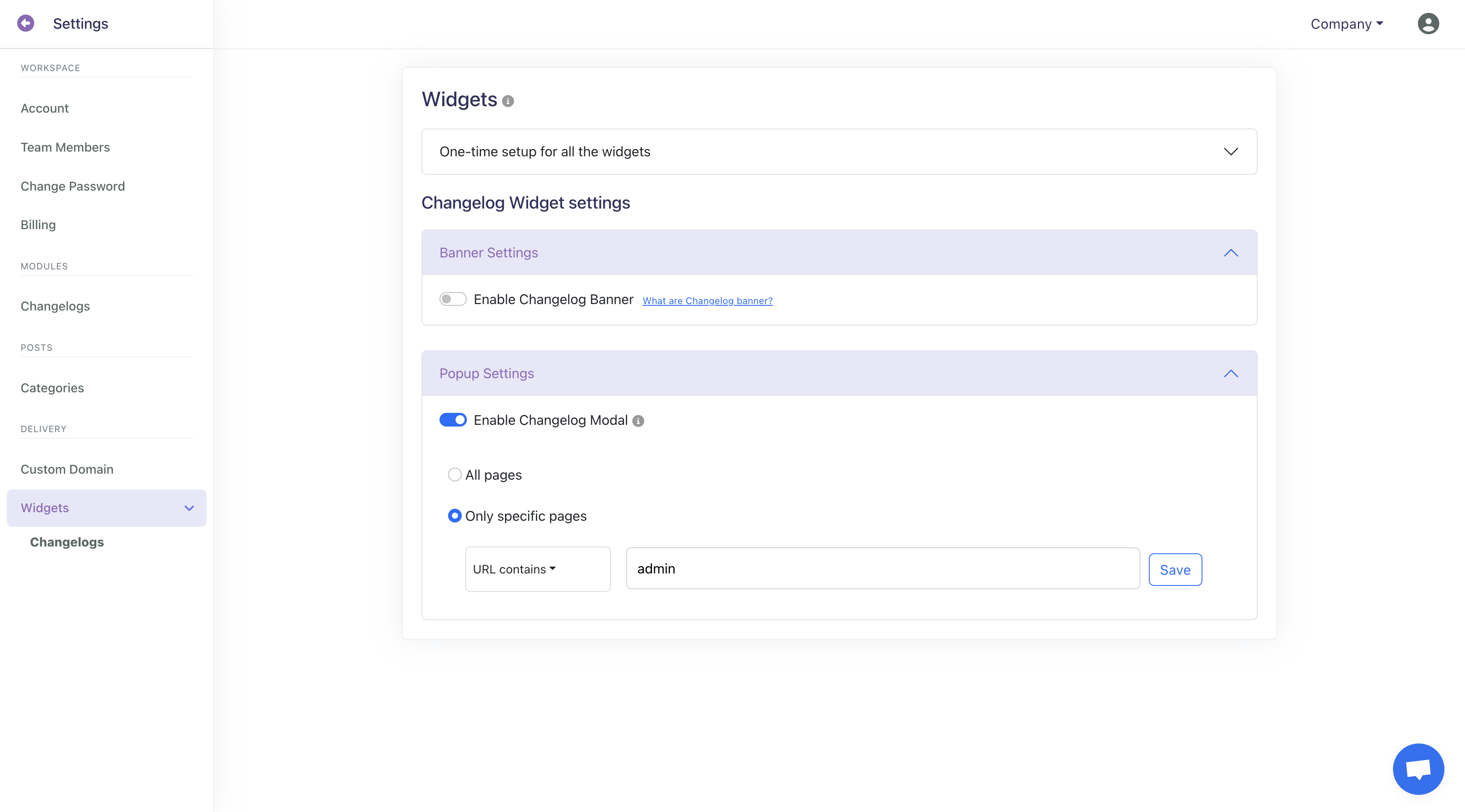Step 2: Enable changelog widget under Settings>>Widget>>Enable Changelog Modal